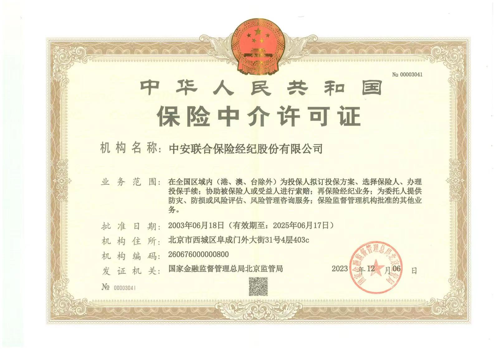 特别声明:中安联合保险经纪股份有限公司(下称“中安联合”)是由中国保险监督管理委员会批准设立的保险经纪公司(京ICP备18005751号-7 经营保险经纪业务许可证:260676000000800 中国保监会网销许可),负责销售网站所载产品。仅向中安联合提供交易平台,而非保险公司的保险代理人,不参与保险相关的任何活动。